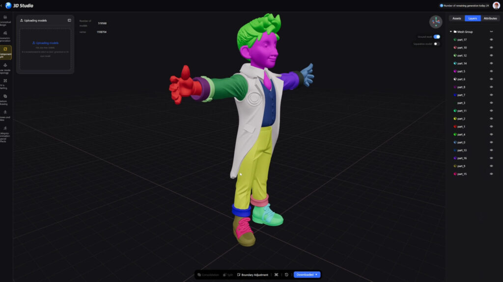Ce qui distingue véritablement Hunyuan 3D 3.0, c’est son engagement pour l’accessibilité. Il est désormais disponible gratuitement via le moteur de création IA Hunyuan 3D, couvrant l’ensemble du pipeline 3D – de la génération de composants au dépliage UV en passant par le skinning. Pour les utilisateurs avancés, une bêta sur invitation de Hunyuan 3D Studio propose une plateforme complète adaptée aux flux de travail professionnels.